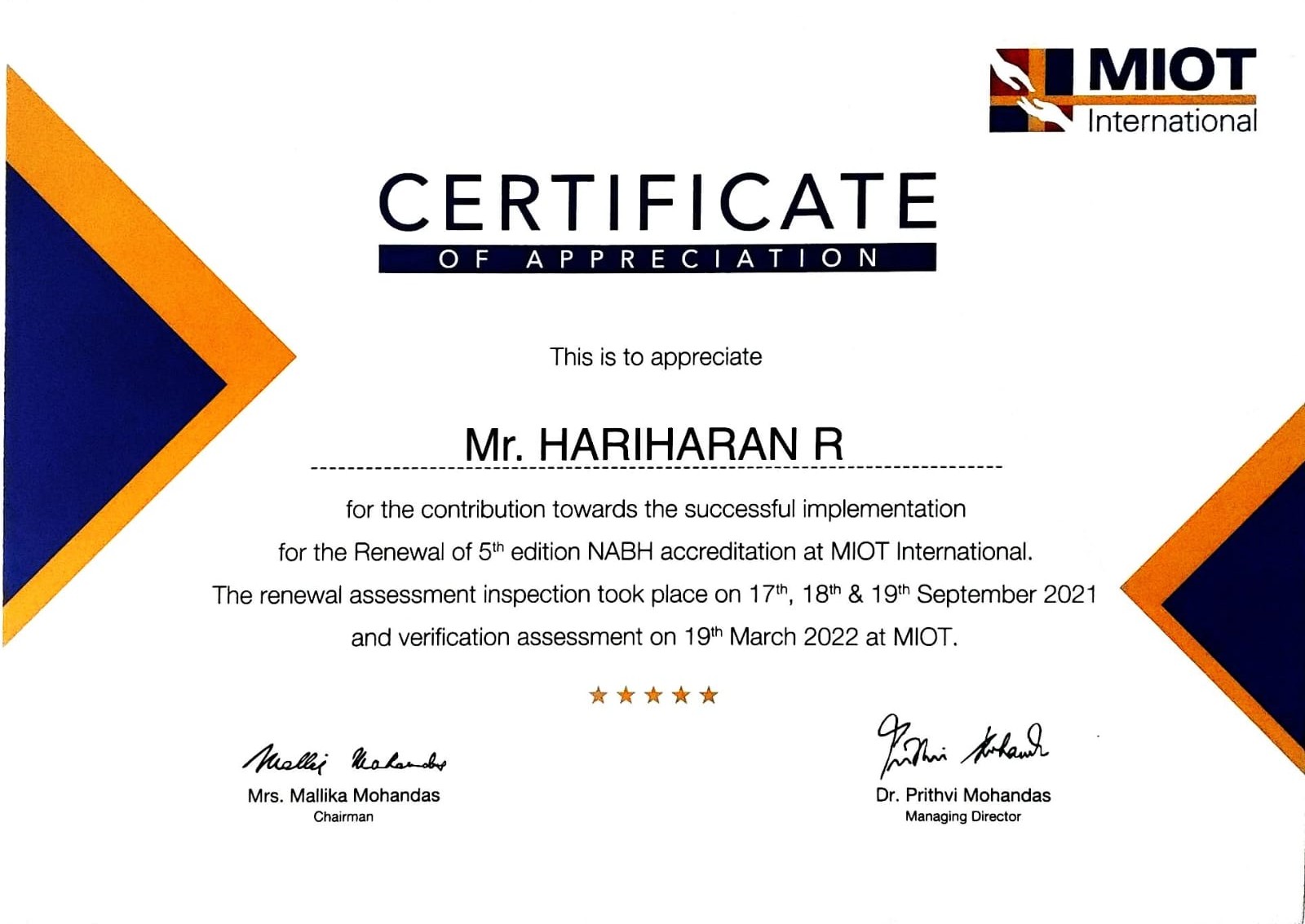 Quality Accreditation expert with 15+ years of experience. Successfully guided more than 50 healthcare organizations across South India.